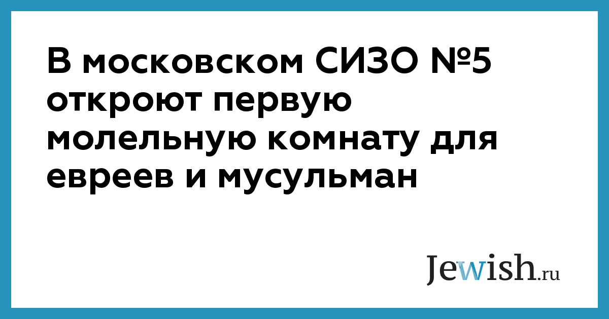 20 апреля на территории московского СИЗО №5 состоится торжественное открытие первой совместной молельной комнаты для иудеев и мусульман. ФЕОР и главный раввинат России собрали средства на ремонт, закупили мебель и религиозную литературу. Со своей стороны исламская община взяла на себя затраты на оснащение помещения коврами, приобретение литературы по исламу и атрибутики.