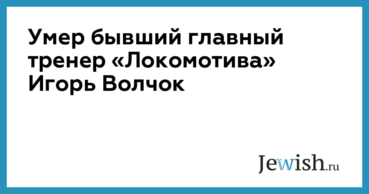 Умер бывший главный тренер «Локомотива» Игорь Волчок