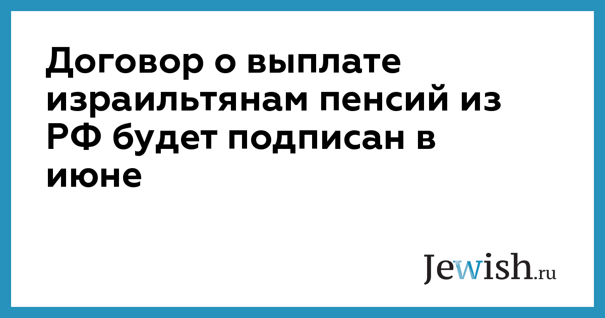 Договор о выплате израильтянам пенсий из РФ будет подписан в июне