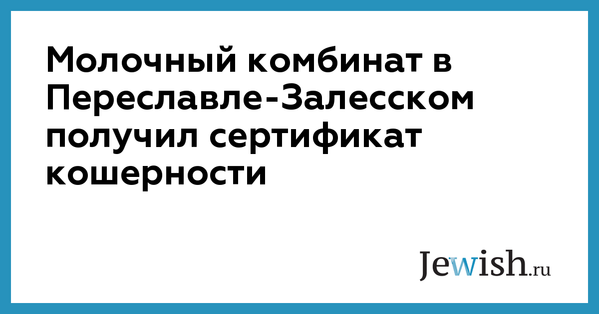 Молочный комбинат в Переславле-Залесском получил сертификат кошерности