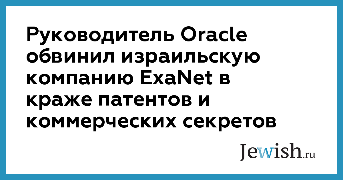 Руководитель Oracle обвинил израильскую компанию ExaNet в краже патентов и коммерческих секретов