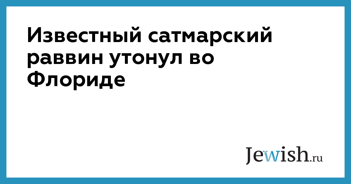 Известный сатмарский раввин утонул во Флориде