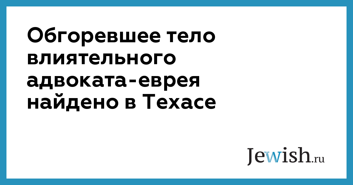 Обгоревшее тело влиятельного адвоката-еврея найдено в Техасе