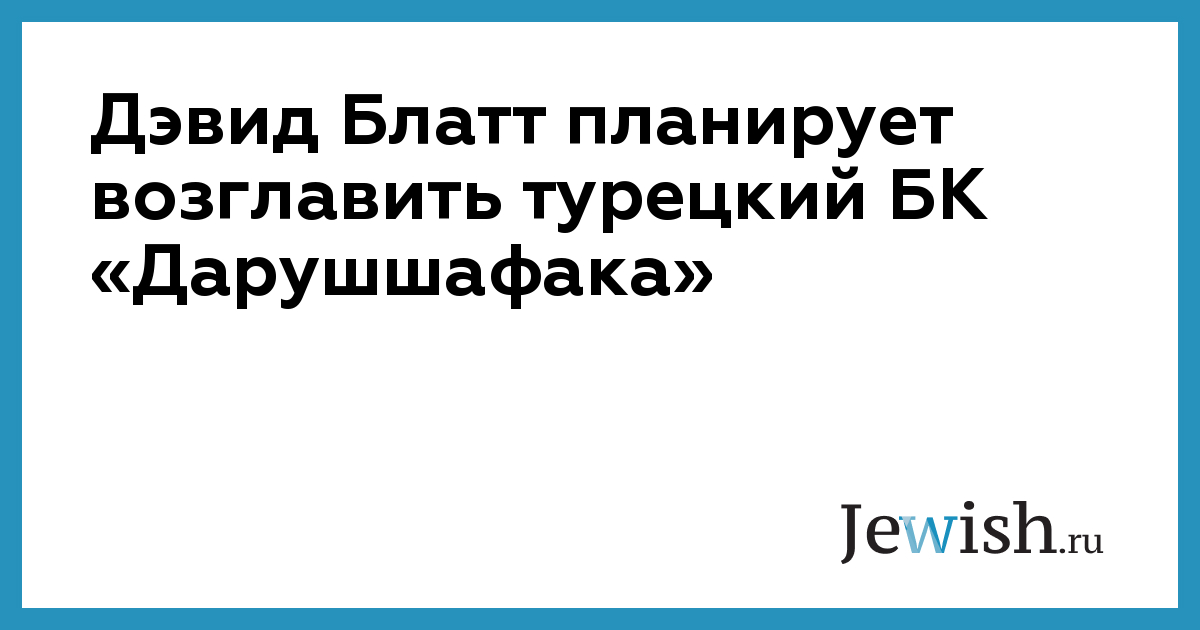 Дэвид Блатт планирует возглавить турецкий БК «Дарушшафака»