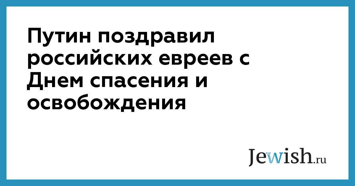 Путин отметил, что каждая памятная дата в еврейской традиции несет в себе глубокий смысл, напоминает об исторических событиях, имеющих особое значение для последователей иудаизма. По словам президента РФ, широкое празднование Дня спасения и освобождения будет «содействовать укреплению духовных, исторических традиций российских евреев и патриотическому воспитанию молодежи, станет большим, объединяющим событием для еврейских общин нашей страны и зарубежных государств».