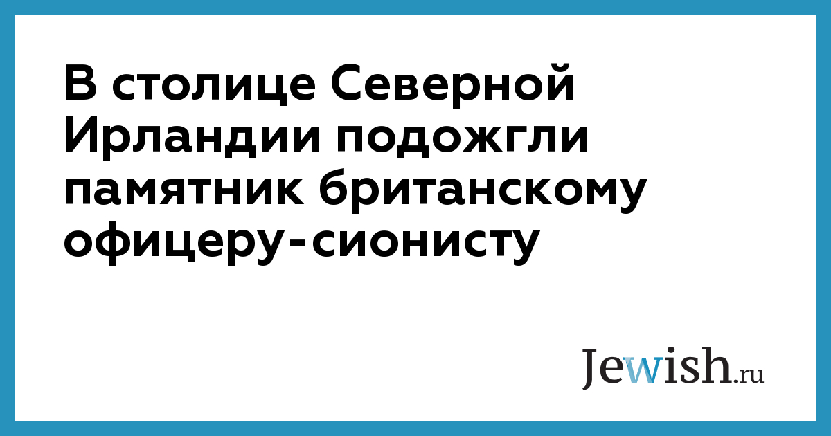 В столице Северной Ирландии подожгли памятник британскому офицеру-сионисту