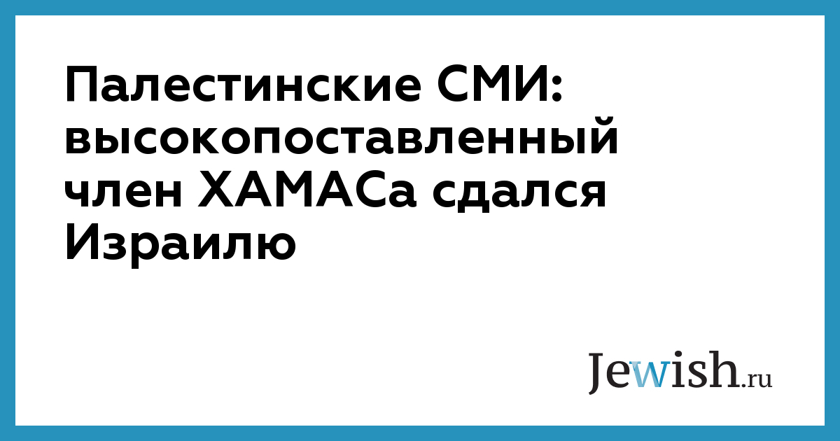 Палестинские СМИ: высокопоставленный член ХАМАСа сдался Израилю