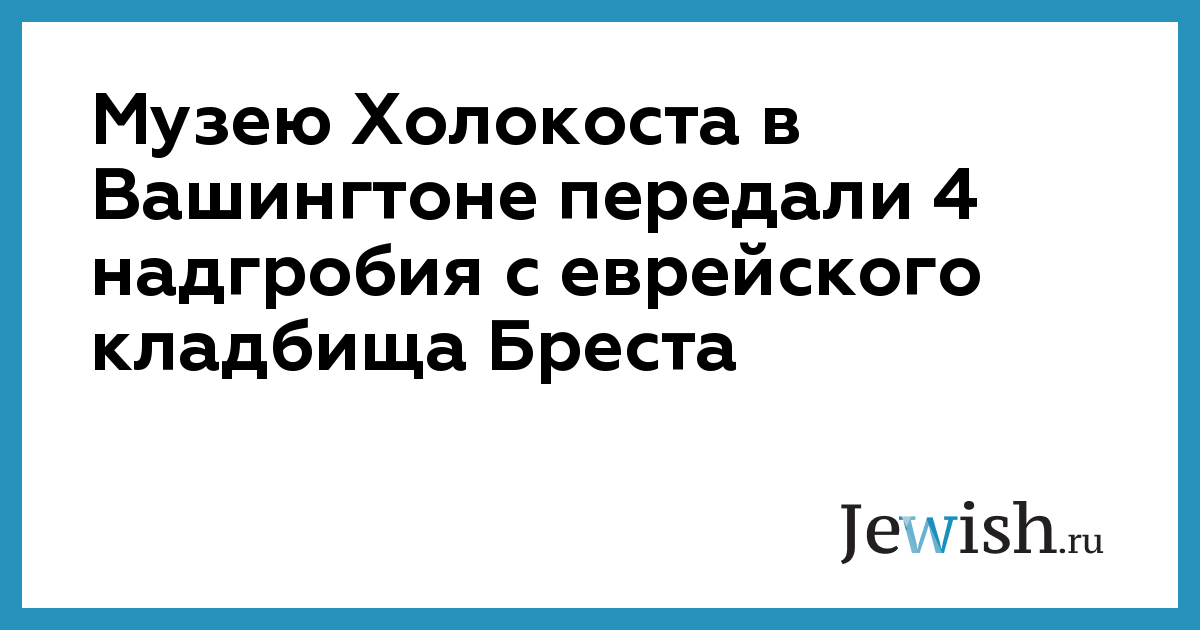 В среду, 15 июня, в Брестском горисполкоме был подписан документ о передаче мемориальному музею Холокоста в Вашингтоне четырех надгробных плит с еврейского кладбища города. «Для нас это очень значимое событие по двум причинам. В Бресте нацисты хотели уничтожить евреев не только физически, но и любой след их цивилизации. Кроме того, ваш город известен во всем мире своим героическим сопротивлением нацистским захватчикам», – заявил директор отдела международных архивных программ музея Холокоста Раду Ионид. Он добавил, что переданные музею Холокоста надгробные плиты будут напоминать обо всех евреях, погибших в Белоруссии во время войны.