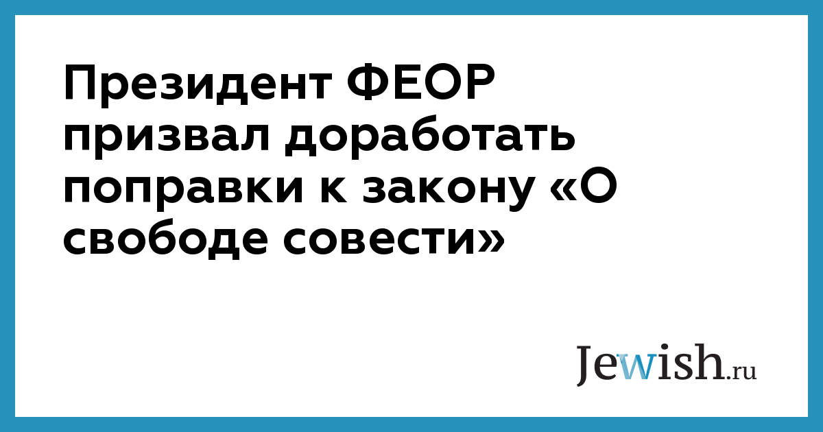 Президент ФЕОР Александр Борода назвал недоработанными поправки к закону «О свободе совести», предложенные депутатами Государственной Думы Ириной Яровой и Виктором Озеровым. Авторы законопроекта предлагают внести отдельную главу «Миссионерская деятельность» и ввести правила, ограничивающие деятельность миссионеров.