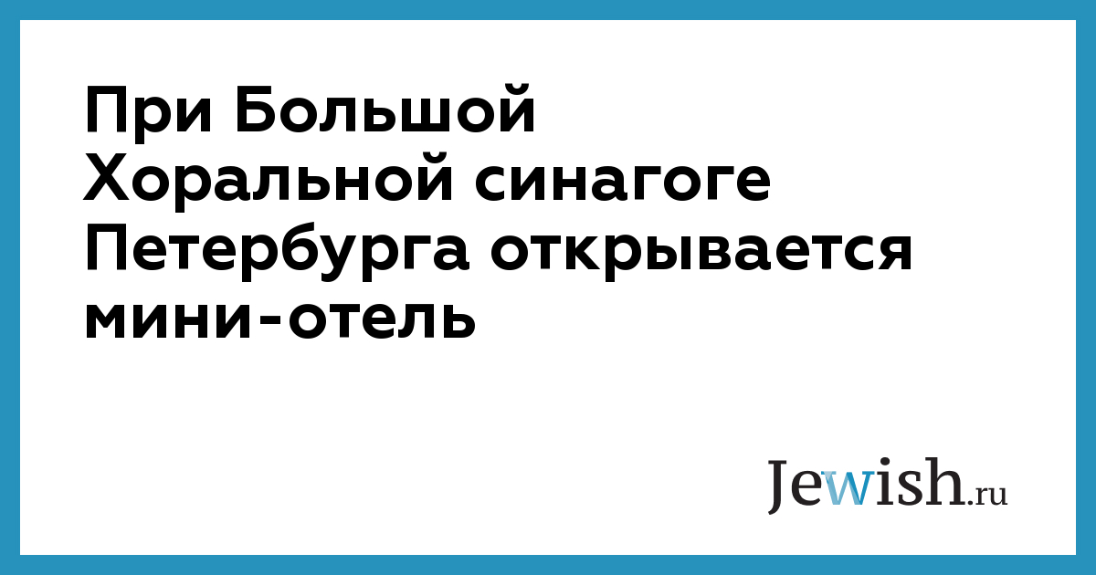 При Большой Хоральной синагоге Петербурга открывается мини-отель