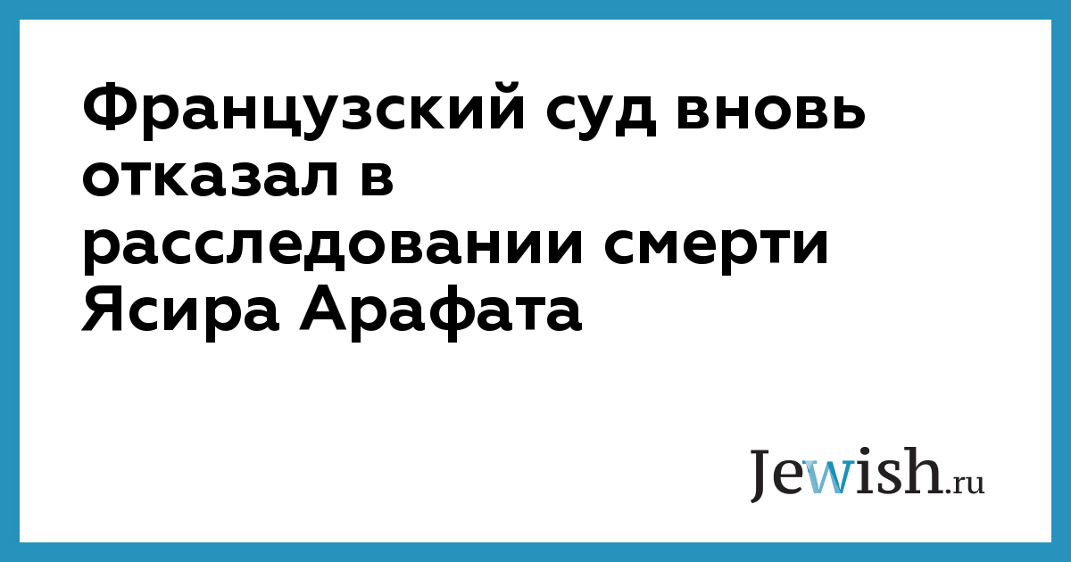 NEWSRU.co.il. Офис генеральной прокуратуры в Версале сообщил, что апелляционный суд сохранил в силе предыдущее решение, согласно которому, нет оснований возобновлять расследование ввиду отсутствия доказательств убийства. Требование провести расследование выдвинула Суха Арафат, вдова Арафата. Ее адвокаты могут подать апелляцию в Верховный суд Франции.