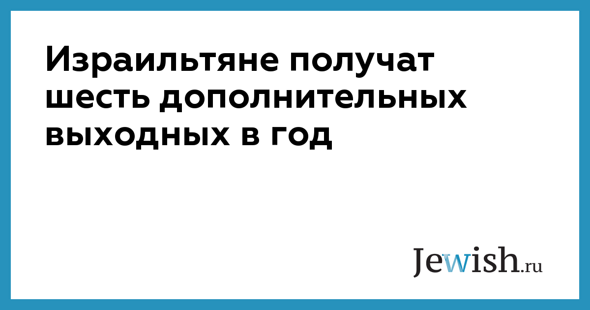 Шесть длинных выходных сократят рабочую неделю на один час, или на 8,5 часов в месяц, что соответствует стандартам OECD. Средняя продолжительность рабочей недели в развитых странах — 40 часов, в Израиле — 43 часа.