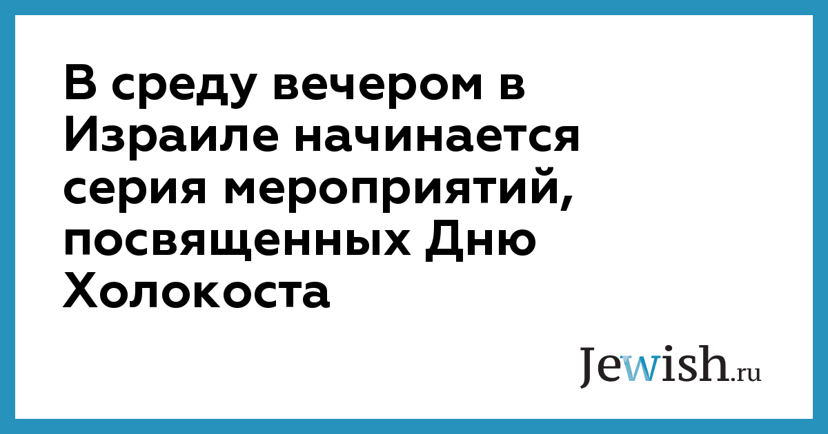 В среду вечером в Израиле начинается серия мероприятий, посвященных Дню Холокоста