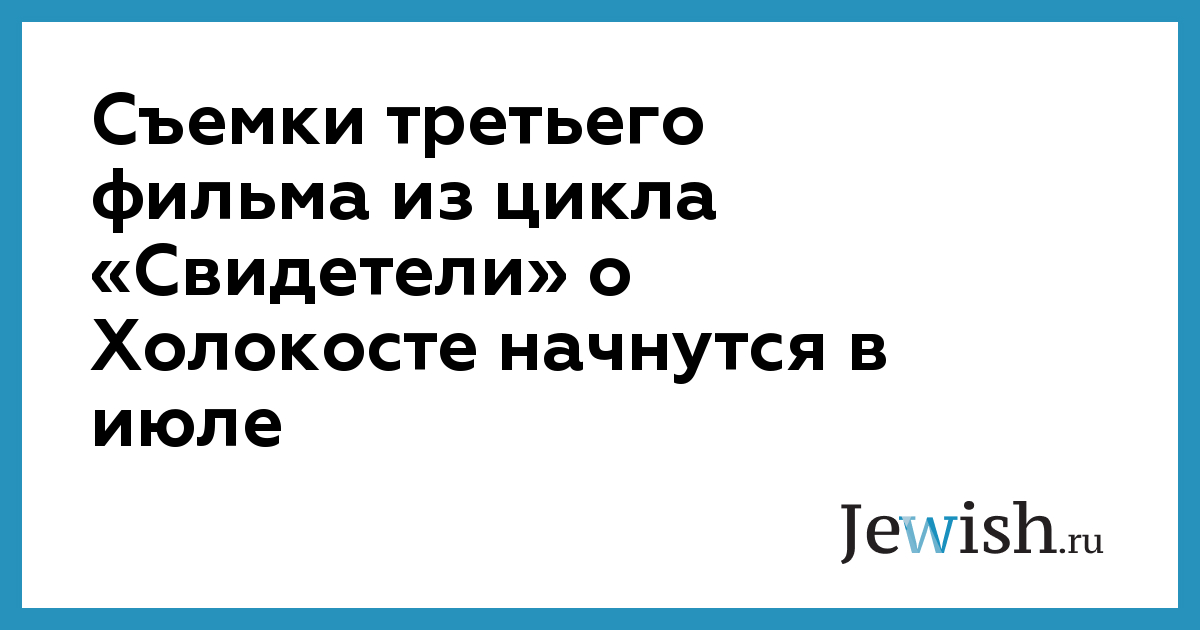 Съемки третьего фильма из цикла «Свидетели» о Холокосте начнутся в июле