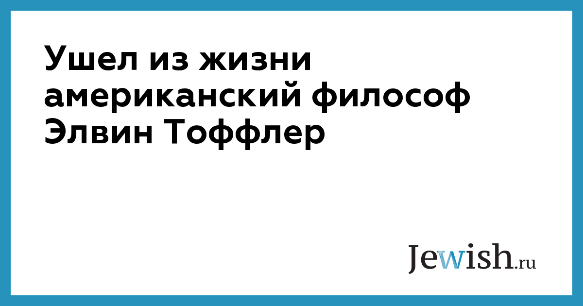 29 июня в Лос-Анджелесе в возрасте 87 лет скончалсяся известный американский философ, социальный мыслитель и футуролог Элвин Тоффлер, автор таких бестселлеров как «Шок будущего», «Третья волна» и «Метаморфозы власти», сообщает