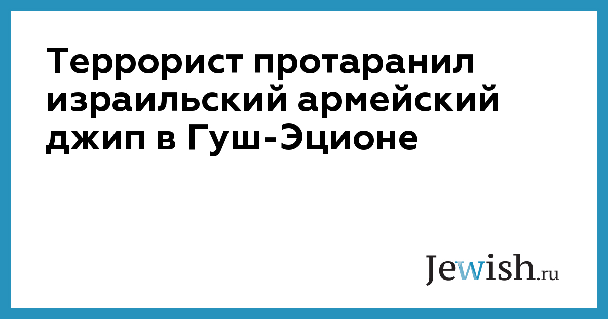 Террорист протаранил израильский армейский джип в Гуш-Эционе