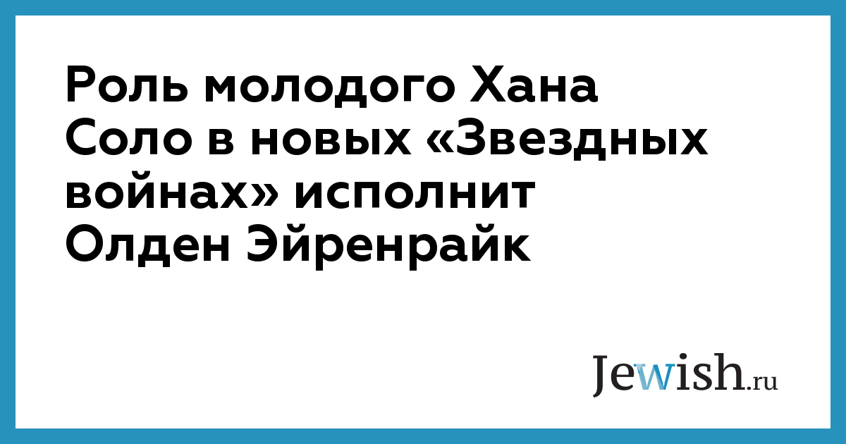 Роль молодого Хана Соло в новых «Звездных войнах» исполнит Олден Эйренрайк