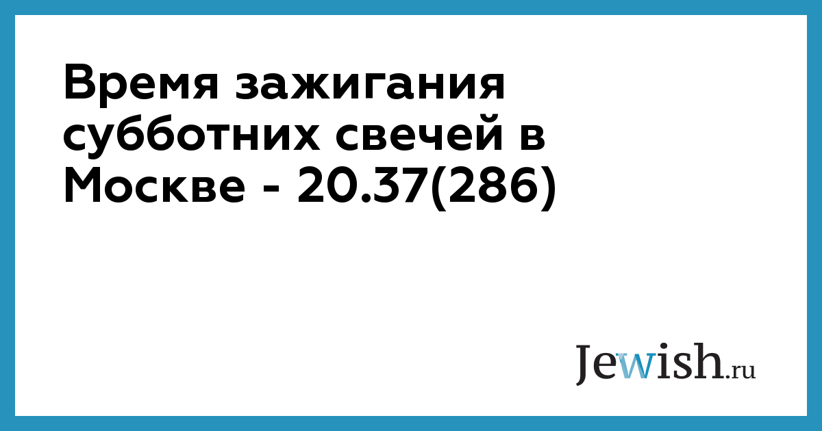 Время зажигания субботних свечей в Москве — 20.37(286)