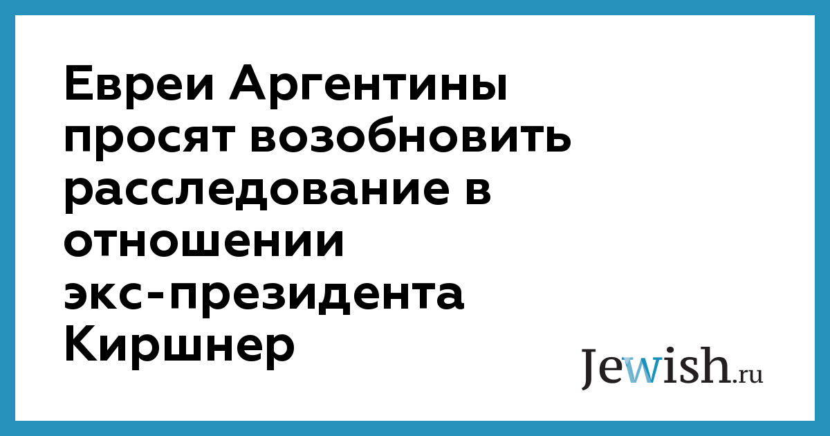 Глава Делегации еврейских ассоциаций Аргентины Ариель Коэн Саббан попросил суд возобновить рассмотрение дела в отношении бывшего президента страны (2007-2015 годы) Кристины Фернандес де Киршнер, пишет
