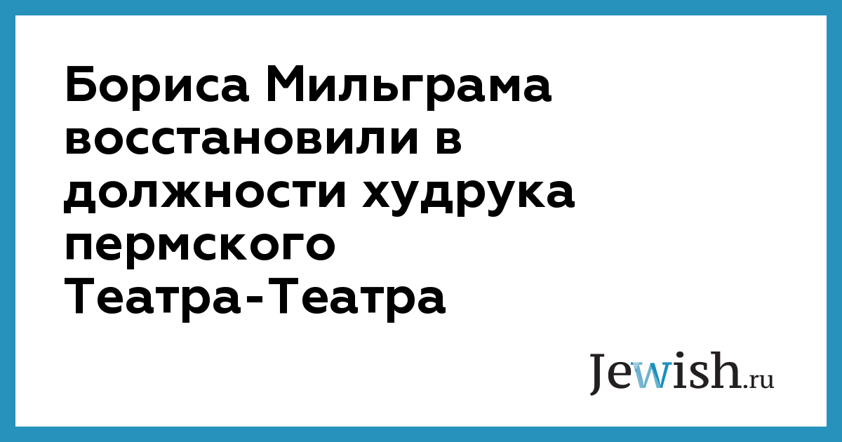 Борис Мильграм восстановлен в должности художественного руководителя Пермского академического Театра-Театра, сообщает