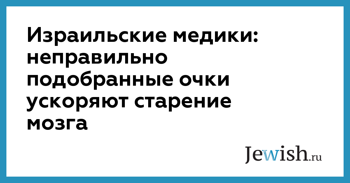 Израильские медики провели исследование, показывающее, что неправильно подобранные очки негативно сказываются на работе головного мозга, усугубляя его старение. Доктор Уриэль Шпирер из больницы «Ихилов» и профессор Михаэль Белкин из Тель-Авивского университета опубликовали статью на эту тему в журнале «Medicine», сообщает