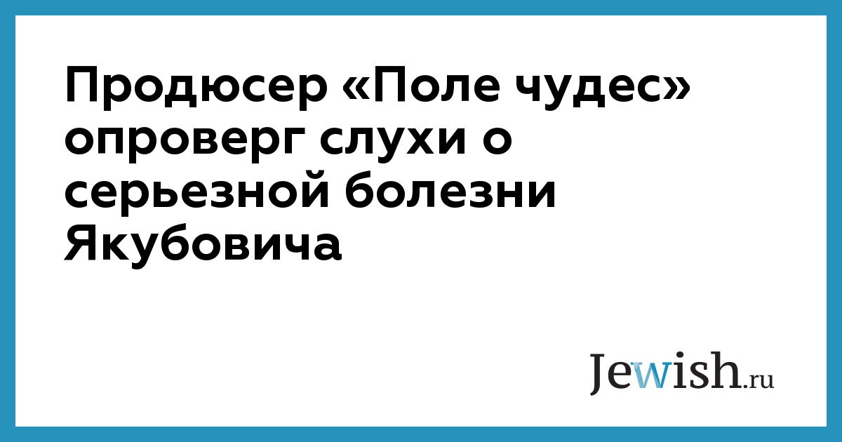 Продюсер программы «Поле чудес» на Первом канале Анатолий Гольдфедер опроверг появившуюся в СМИ информацию о том, что ведущий программы Леонид Якубович серьезно болен и проходит лечение в Германии. Как сообщил Гольдфедер