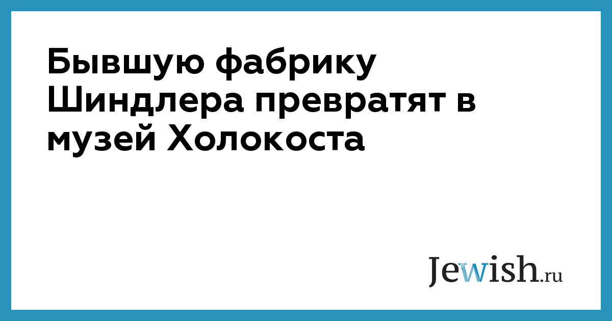 Бывшую фабрику Шиндлера превратят в музей Холокоста