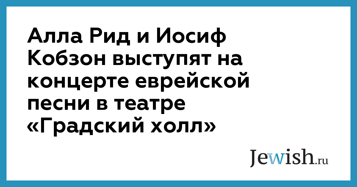 27 октября в театре «Градский холл» в Москве состоится концерт еврейской песни. Главным действующим лицом вечера станет певица Алла Рид, финалистка шоу «Голос-4». В качестве специального гостя в концерте примет участие Иосиф Кобзон, также на сцену выйдут Александр Градский и солист театра Андрей Лефлер. В ходе мероприятия прозвучат знаменитые песни на идиш и иврите в сопровождении большого оркестра. Подробная информация о концерте представлена на