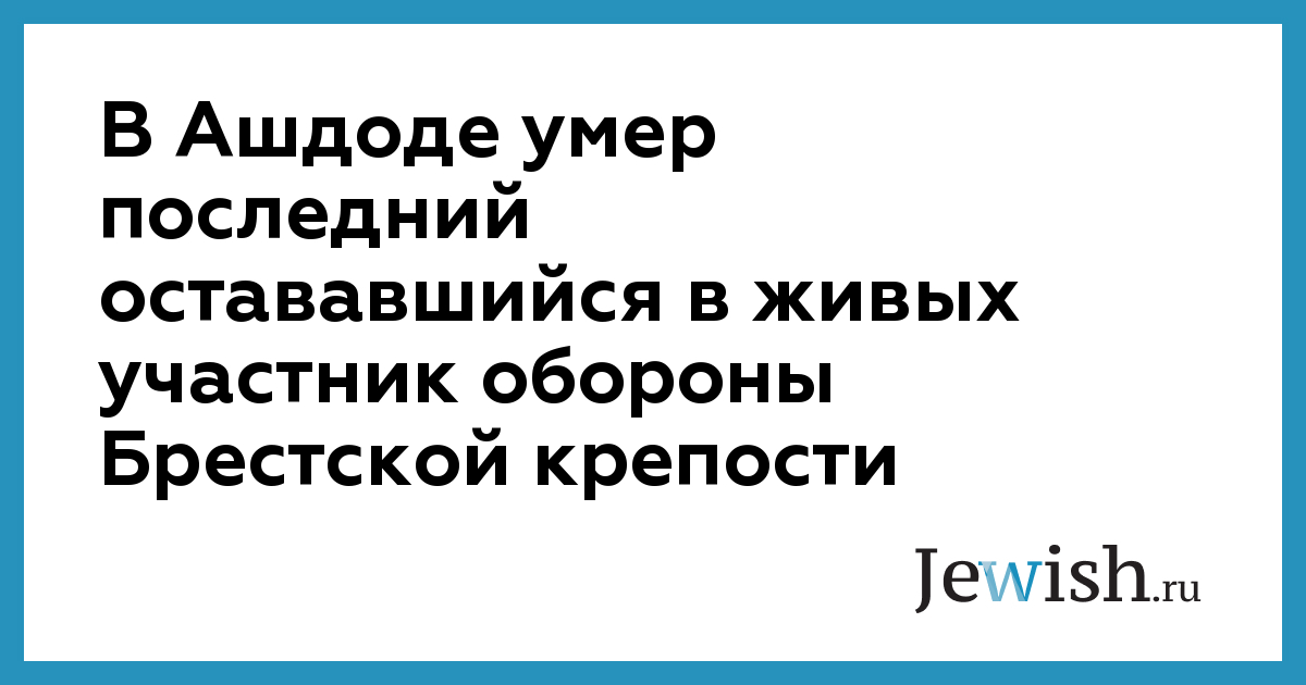 В Ашдоде умер последний остававшийся в живых участник обороны Брестской крепости