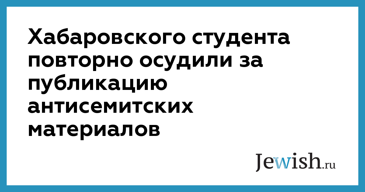 Хабаровского студента повторно осудили за публикацию антисемитских материалов