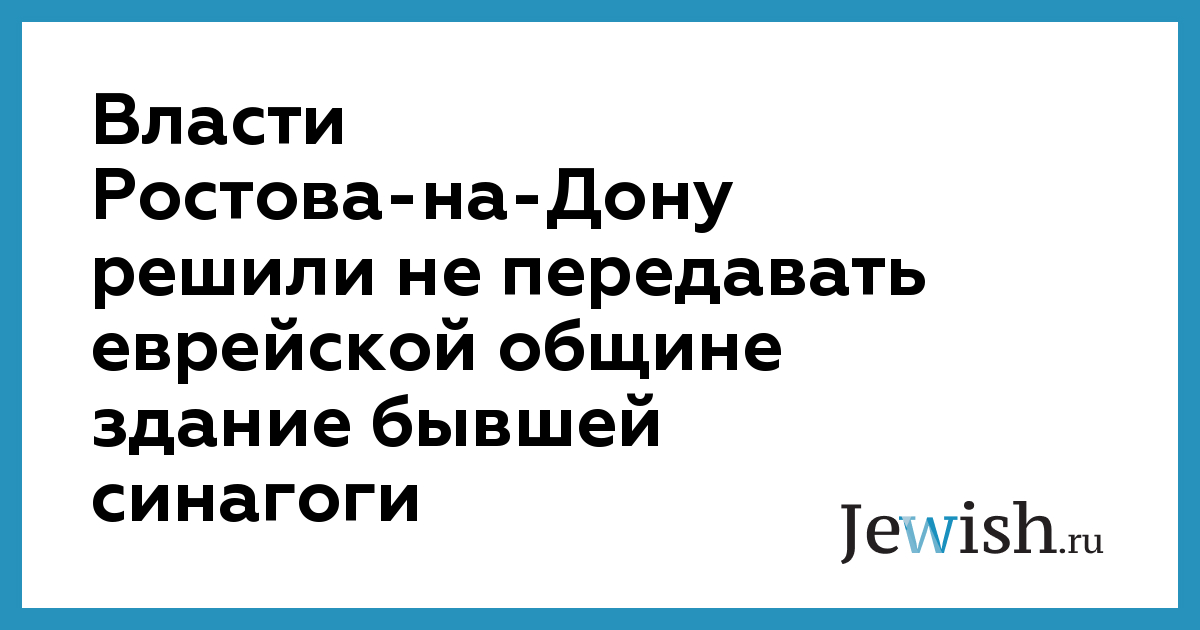 Власти Ростова-на-Дону решили не передавать еврейской общине здание бывшей синагоги