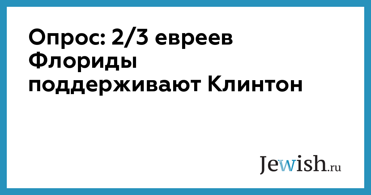 Результаты опроса, проведенного начале августа компанией GBA Strategies, свидетельствуют о том, что еврейское население штата Флорида решительно предпочитает демократического кандидата Хиллари Клинтон республиканцу Дональду Трампу, сообщает