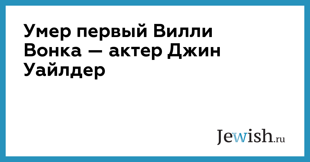 Американский актер Джин Уайлдер (настоящее имя — Джером Силберман) скончался в своем доме в городе Стамфорд в возрасте 83 лет. Родственники актера подтвердили информацию о его смерти. По их словам, причиной смерти стали осложнения, вызванные болезнью Альцгеймера.