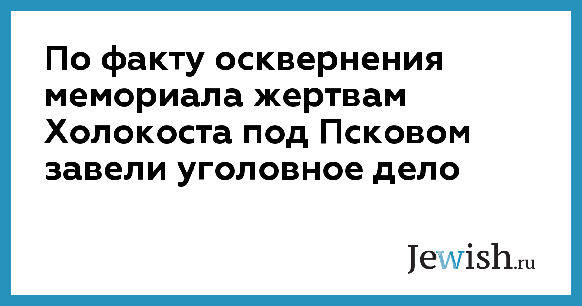 По факту осквернения мемориала жертвам Холокоста под Псковом завели уголовное дело