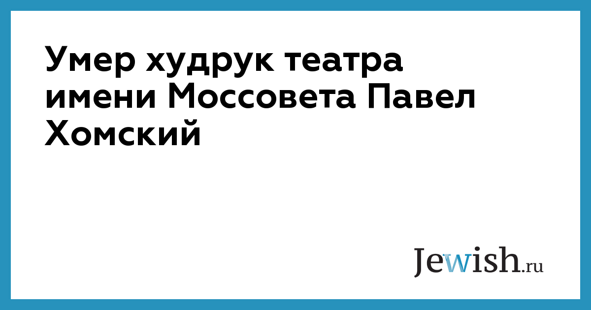 Художественный руководитель Московского академического театра имени Моссовета, народный артист РСФСР Павел Хомский скончался на 92-м году жизни. Хомский прослужил в театре имени Моссовета более 40 лет. О времени прощания и похорон будет сообщено позднее, пишет