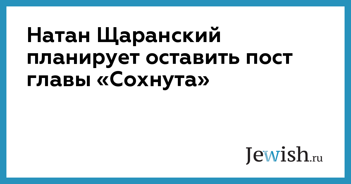 Натан Щаранский, возглавляющий «Сохнут» с 2009 года, планирует оставить этот пост в июне 2017 года, когда закончится его вторая каденция. Об этом 68-летний политик и общественный деятель сообщил в интервью