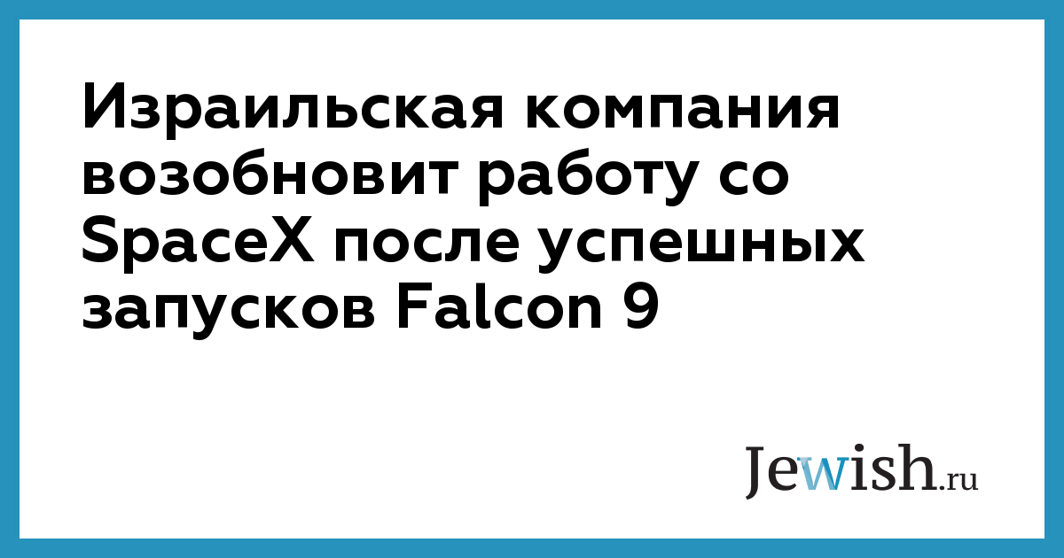 Израильская компания Space Communication будет готова доверить американской SpaceX еще один свой спутник только после нескольких успешных запусков ракеты-носителя Falcon 9. Об этом заявил в опубликованном во вторник интервью агентству Reuters исполнительный директор Space Communication Дэвид Поллак, пишет
