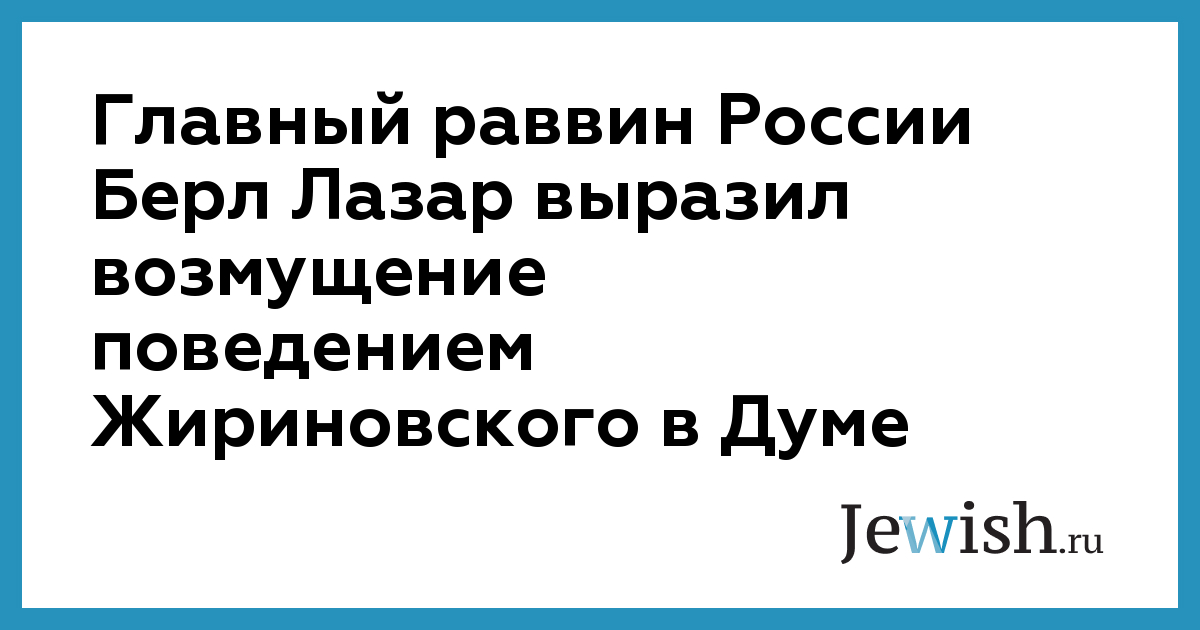 Главный раввин России Берл Лазар выразил возмущение поведением Жириновского в Думе