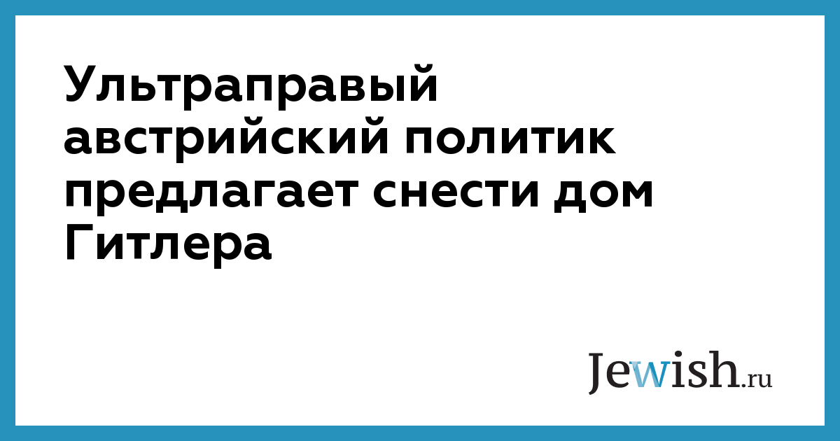 «Есть лишь два способа решить проблему дома Гитлера: либо превратить его в музей, либо снести. Если вас интересует мое личное мнение, то я бы выбрал второе», — заявил кандидат в президенты Австрии от крайне правой Партии свободы Норберт Хофер, сообщает