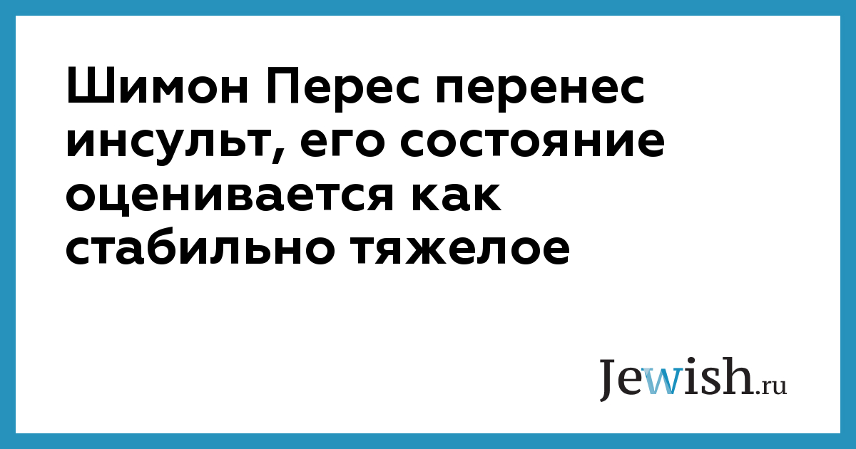 Вечером 13 сентября бывший президент Израиля Шимон Перес был госпитализирован в больницу «Шиба» (Тель а-Шомер) с подозрением на инсульт. Его состояние оценивается врачами как стабильно тяжелое.