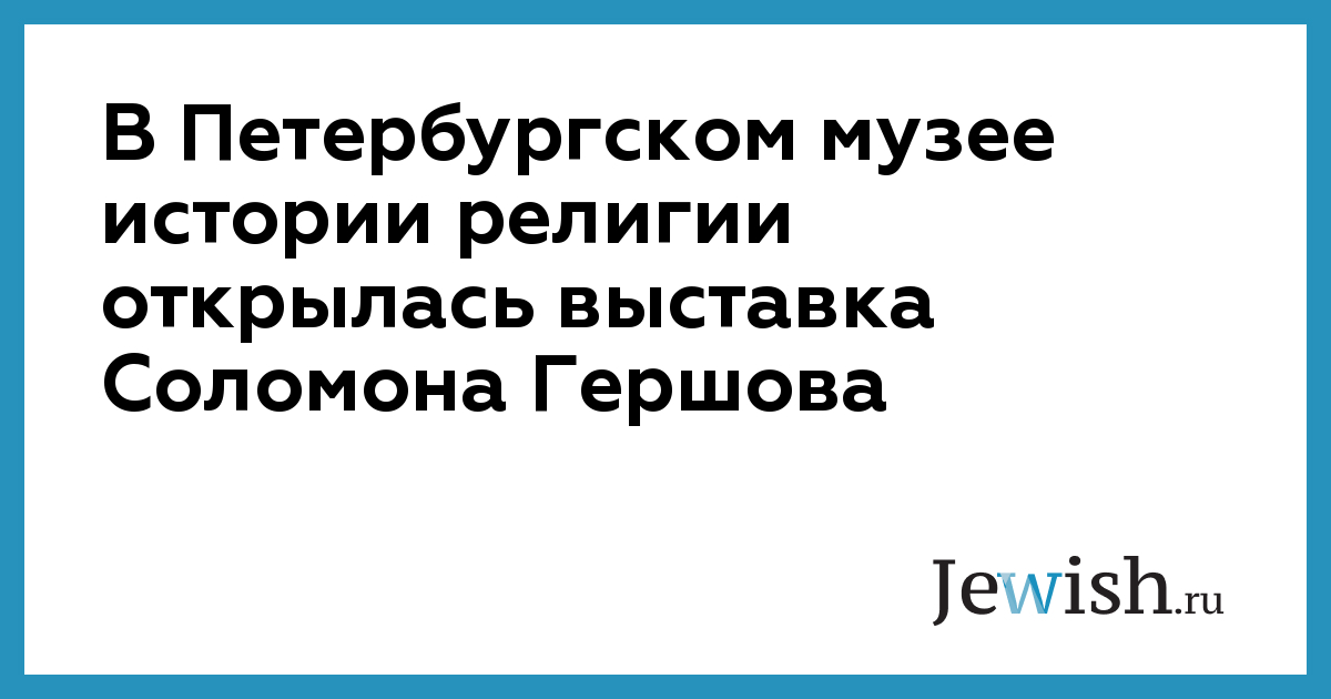 В Государственном музее истории религии открылась выставка ленинградского художника-экспрессиониста Соломона Гершова (1906–1989) «Память. Боль. Библия», приуроченная к 110-летию со дня рождения художника. Это совместный проект ГМИРа и центра «Петербургская иудаика». Авторы выставки – Алла Соколова, куратор раздела «иудаизм» ГМИРа, и Ирина Мамонова, автор диссертации, посвященной Гершову. На выставке представлены работы из собрания второй жены художника Т. Федотовой-Гершовой, пишут