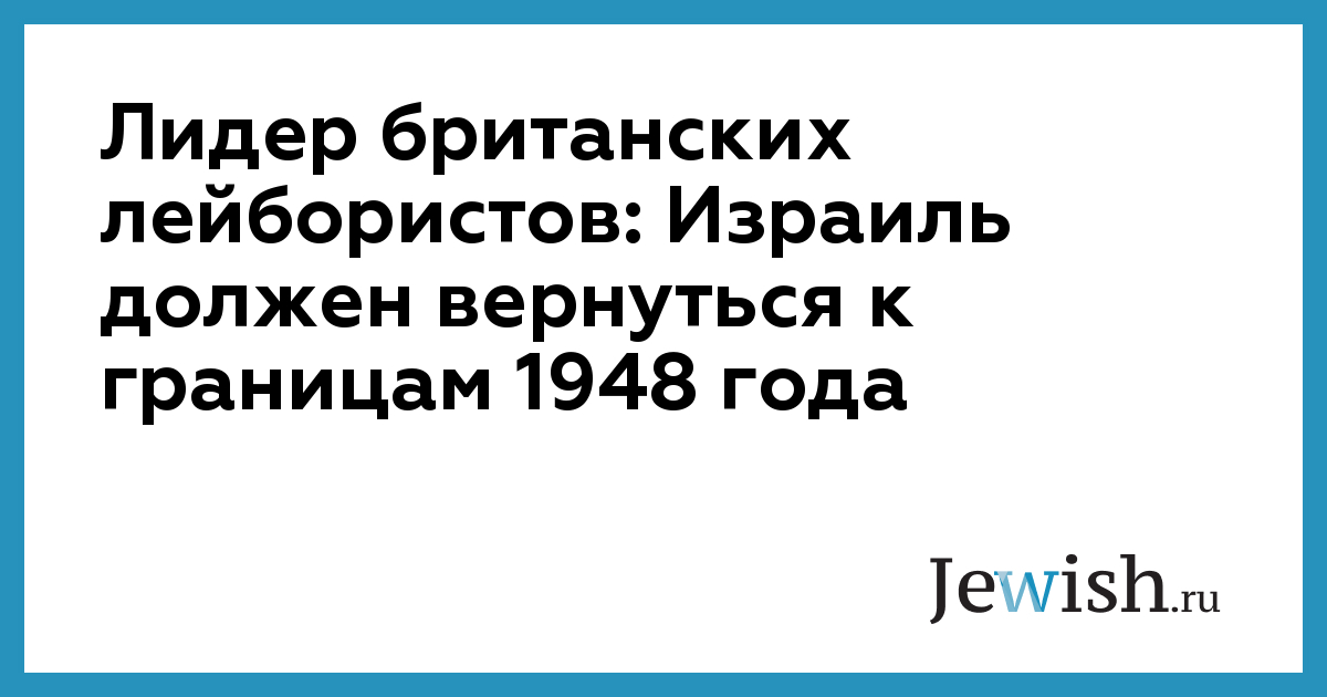 Лидер британских лейбористов: Израиль должен вернуться к границам 1948 года