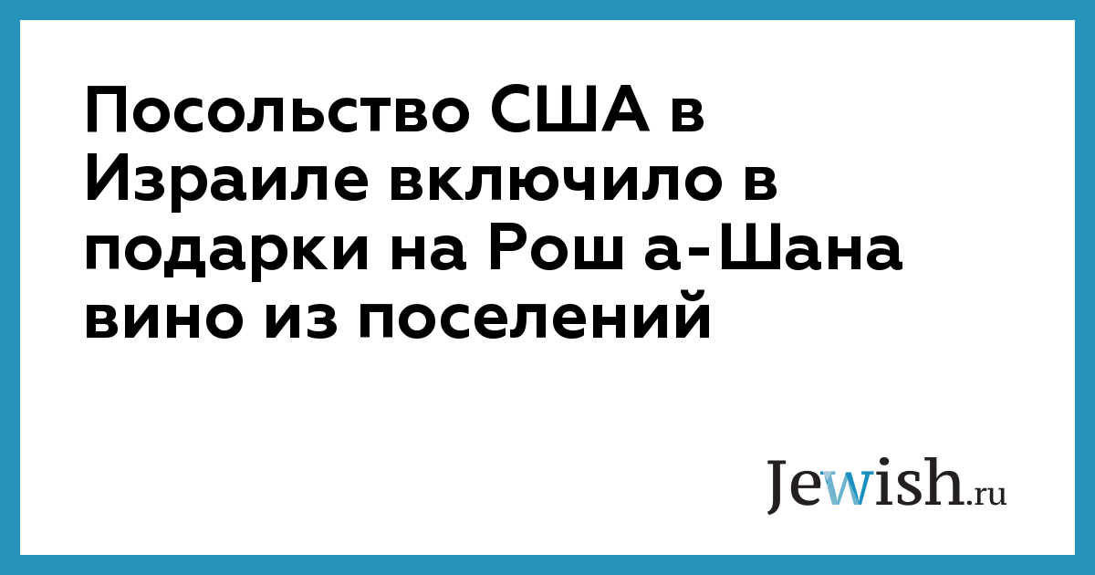 Посольство США в Израиле включило в подарки на Рош а-Шана вино из поселений