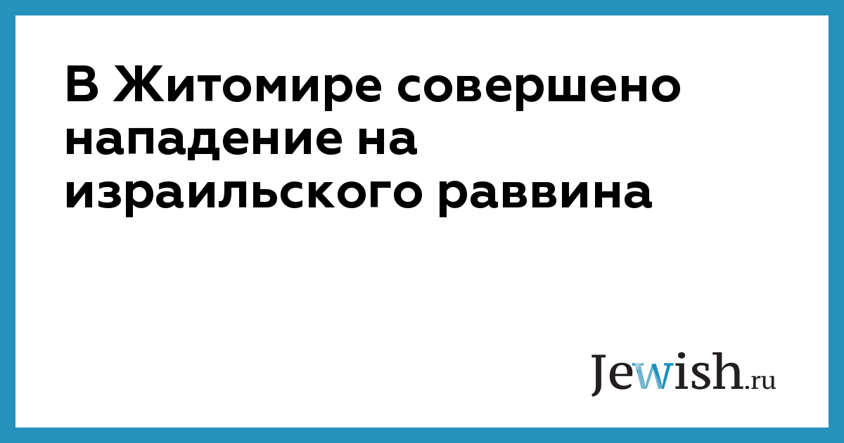 В минувшую пятницу, 7 октября, в Житомире был сильно избит и порезан ножом раввин Мордехай Дойч, гражданин Израиля.