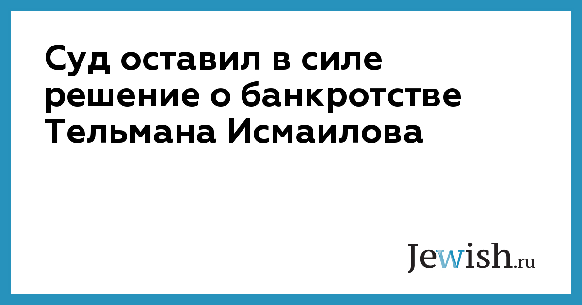 Также Тельман Исмаилов в декабре 2015 года подал заявление о собственном банкротстве. Тогда иск был оставлен без движения из-за нарушений правил подач иска. В частности, представитель Исмаилова не предоставил доказательств оплаты госпошлины.