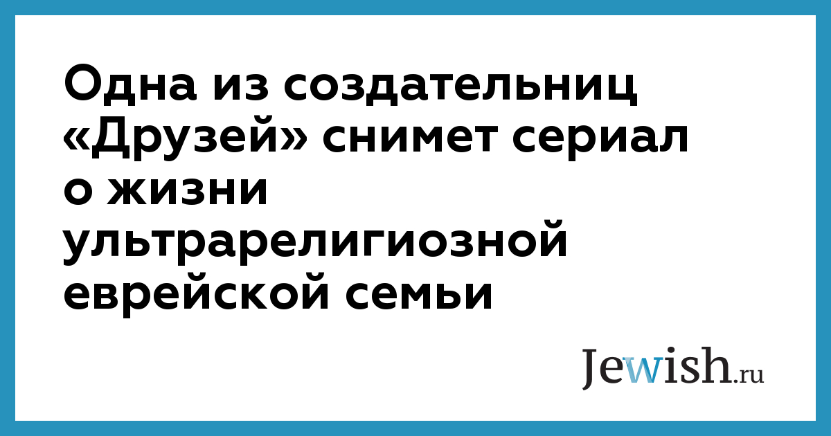 Одна из создательниц «Друзей» снимет сериал о жизни ультрарелигиозной еврейской семьи