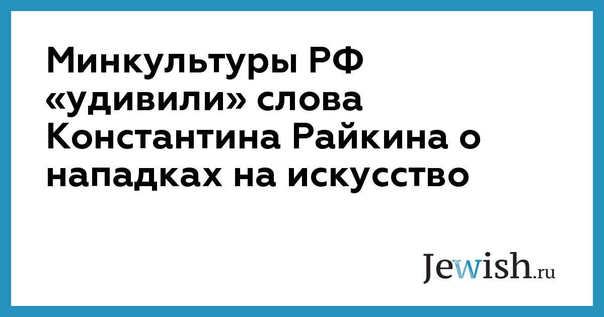 В Минкультуры РФ прокомментировали выступление главы театра «Сатирикон» Константина Райкина Всероссийском театральном форуме, в котором тот заявил об угрозе возвращения к цензуре в России. Замминистра культуры Александр Журавского сообщил, что его ведомство никогда не вмешивается в художественную деятельность театров, не подвергает драматургический материал корректуре, поэтому слова Константина Райкина удивляют представителей министерства, пишет