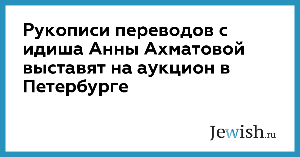 Рукописи переводов с идиша Анны Ахматовой выставят на аукцион в Петербурге