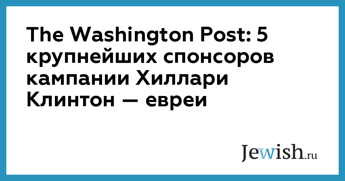 The Washington Post: 5 крупнейших спонсоров кампании Хиллари Клинтон — евреи