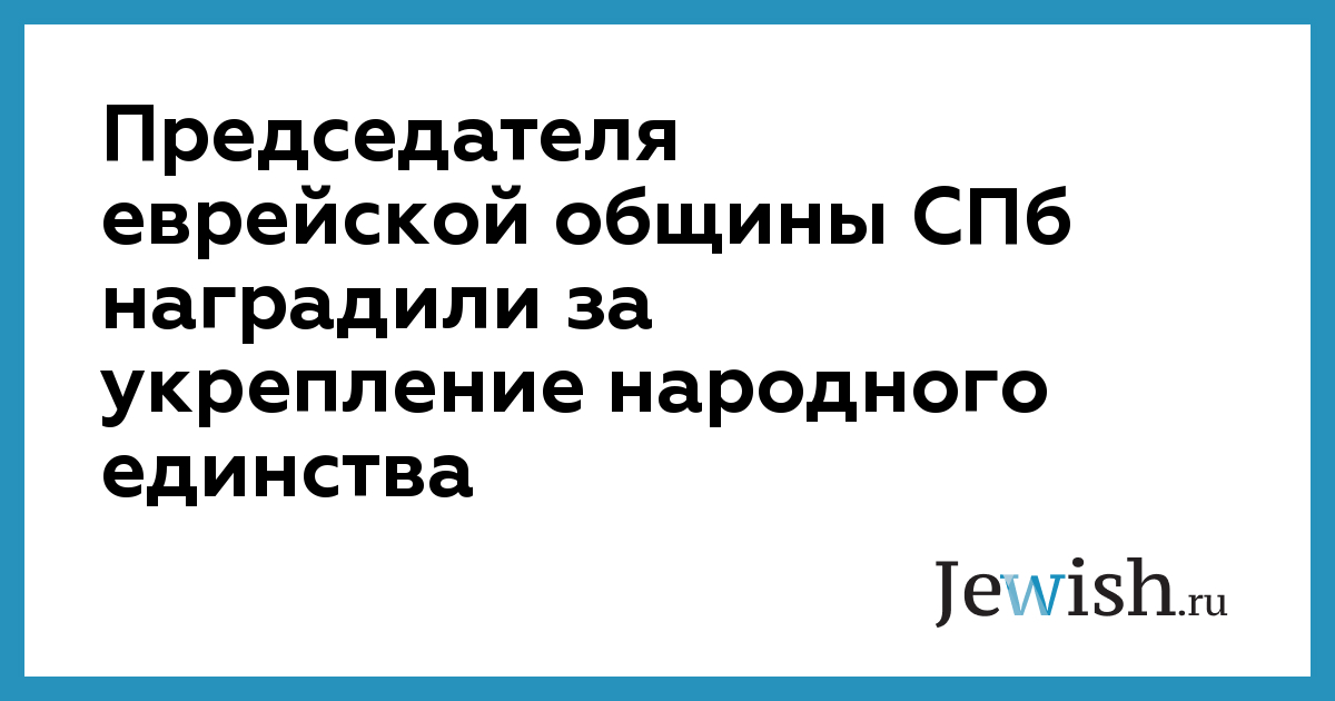 Председателя еврейской общины СПб наградили за укрепление народного единства